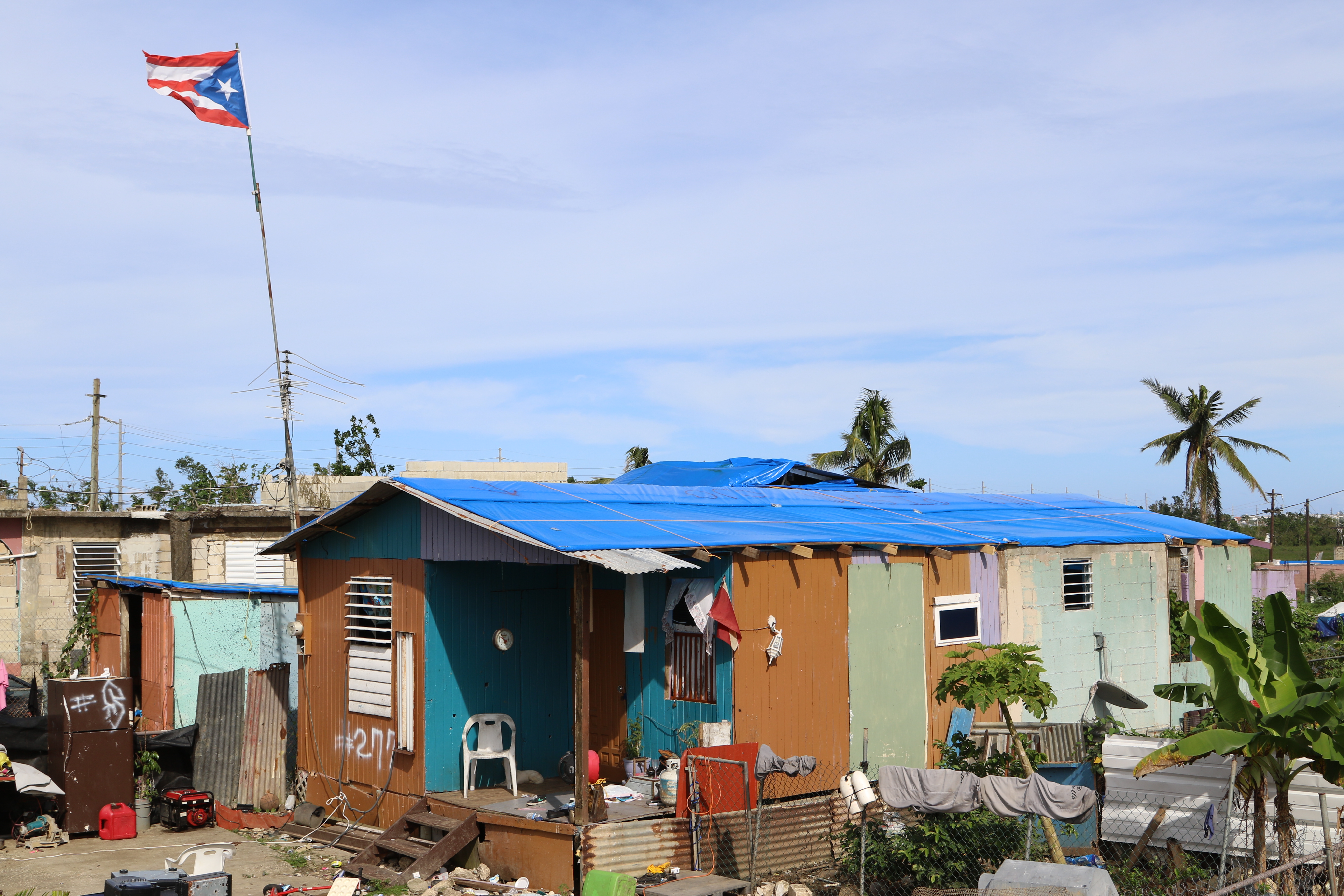House with a blue tarp photographed after Hurricane Maria hit Dorado, Puerto Rico.
